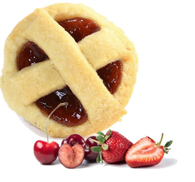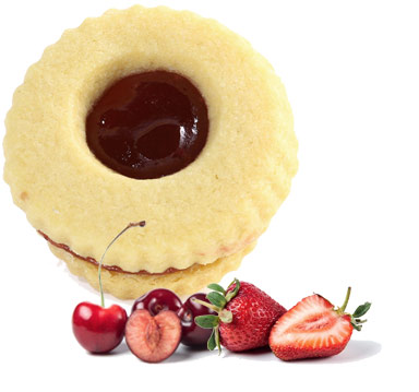 FARCITURA: preparato di più frutti 20 % (mele, susine, ciliegie, albicocche, fragole) , zucchero, pectina, correttori di acidità.