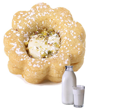DECORAZIONE: granella dolce (riso, zucchero, miele). crema spalmabile al Pistacchio 20%, aroma naturale.